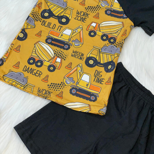 Yellow & Black Work Zone Printed Raglan and Short Set