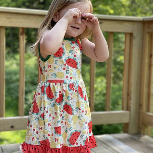 Yellow Striped Embroidered Chicken Ruffle Sleeveless Mid-Twirl Dress